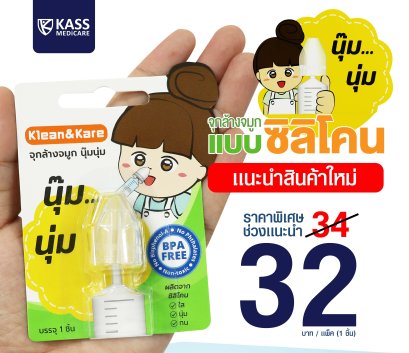 โฉมใหม่ ไม่เจ็บจมูก!!! Klean&Kare จุกล้างจมูก ผลิตจากซิลิโคน .ใส นุ่ม ทนความร้อน ทน UV ทนแอลกอฮอล์ เป็นอุปกรณ์เสริมช่วยล้างจมูกใช้ร่วมกับสำหรับไซรินจ์ เพิ่มความกระชับในการล้างจมูก ล้างง่ายขึ้น ประหยัดน้ำเกลือ ป้องกันไม่ให้ปลายไซริงค์ทิ่มจมูก