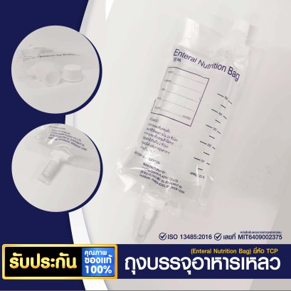 ถุงบรรจุอาหารเหลว TCP (Enteral Nutrition Feeding Bag) สำหรับผู้ป่วย ผู้สูงวัย ผ่านการฆ่าเชื้อด้วยแก๊สเอทธิลีน อ็อกไซด์ (EOG Sterilized) เพื่อให้ปลอดเชื้อ ทำจากพลาสติกลามิเนตหนา 110 ไมครอน ขนาดบรรจุ 500 ml