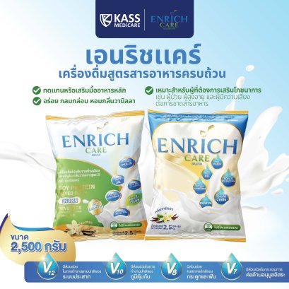 Enrich Care สูตรไม่มีน้ำตาล เหมาะสำหรับผู้ป่วยเบาหวานและผู้ที่ควบคุมระดับน้ำตาลในเลือด มีส่วนผสมจากโปรตีนถั่วเหลือง ใยอาหาร และสารให้ความหวานจากธรรมชาติ ให้พลังงานและสารอาหารครบถ้วนโดยไม่เติมน้ำตาลทราย
