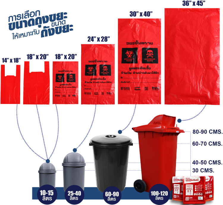 ถุงขยะแดงเเคสส์เมดิเเคร์ แบบมาตรฐานมีทั้งเเบบทรงธรรมดารูปทรงสี่เหลี่ยม พร้อมพับด้านข้างทั้งสองด้าน เเละเเบบหู้หิิ้ว รายละเอียด/ขนาด/แพ็คไซส์ ความหนา เเละน้ำหนักต่อขนาดในเเต่ละเเพ็คไซส์ ตามด้านล่างนี้