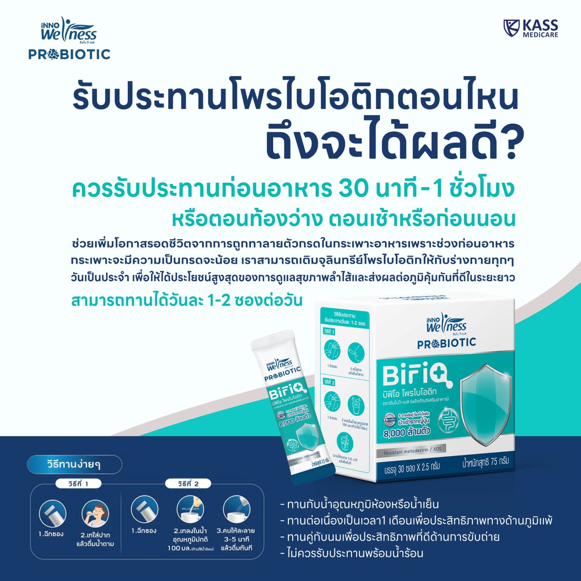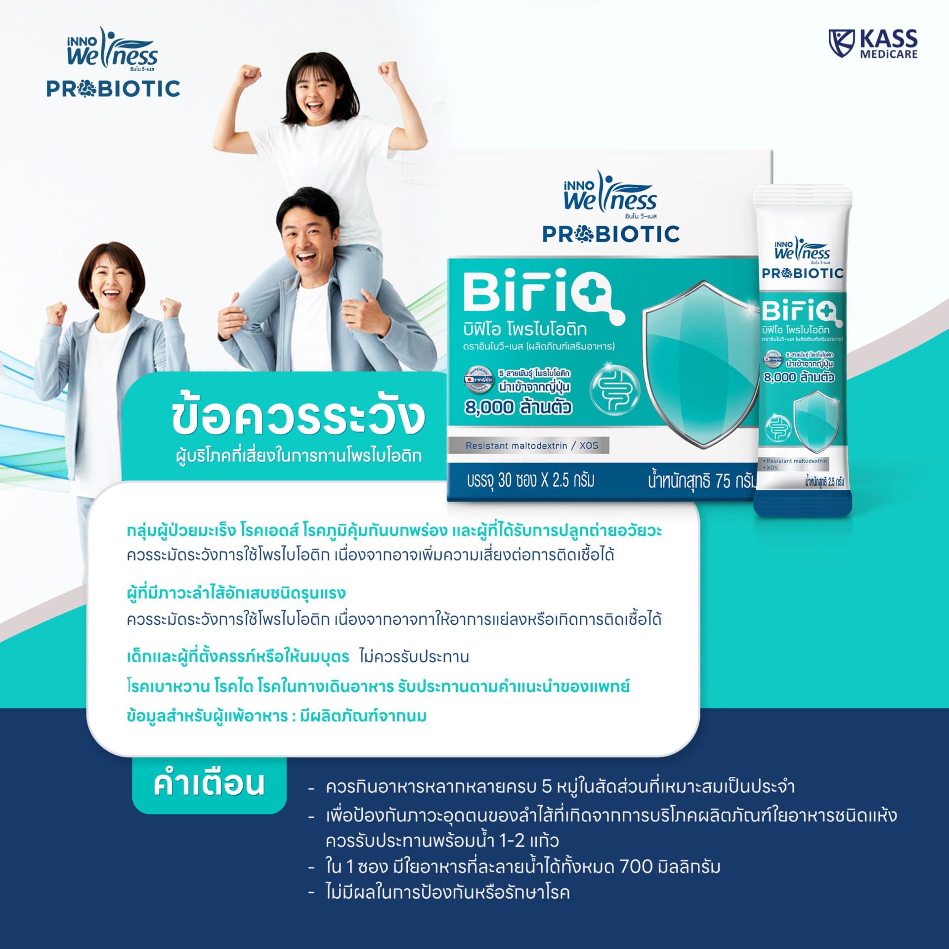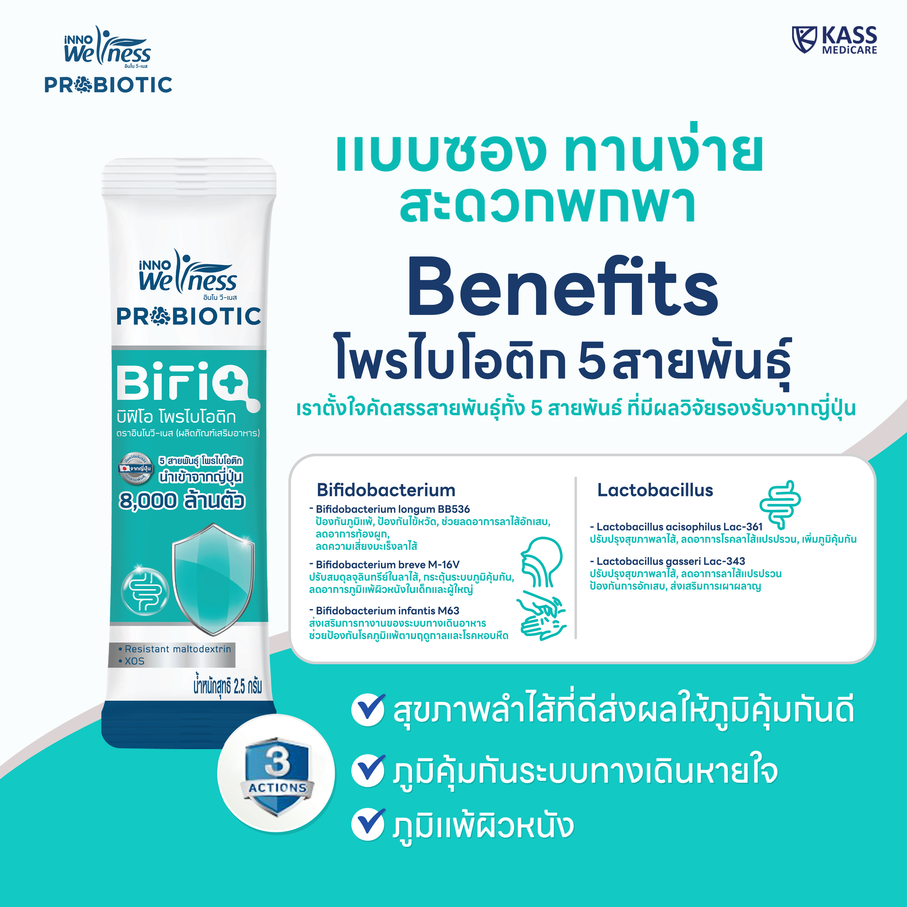 - มี Prebiotic ส่งเสริมการทำงานให้ Probiotic