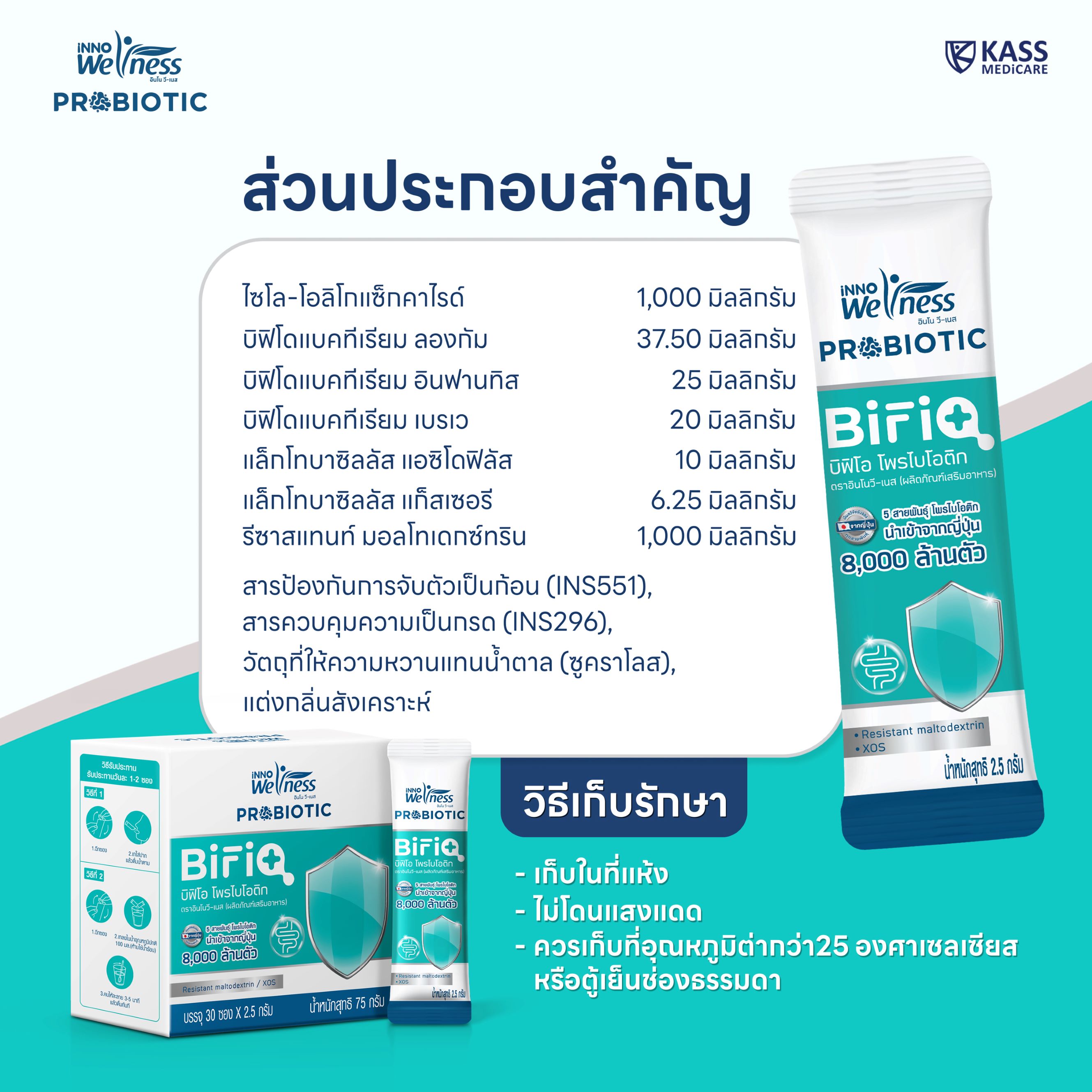 เก็บไว้ในที่แห้ง ห่างจากแสงแดด อุณหภูมิไม่เกิน 25 องศาเซลเซียส